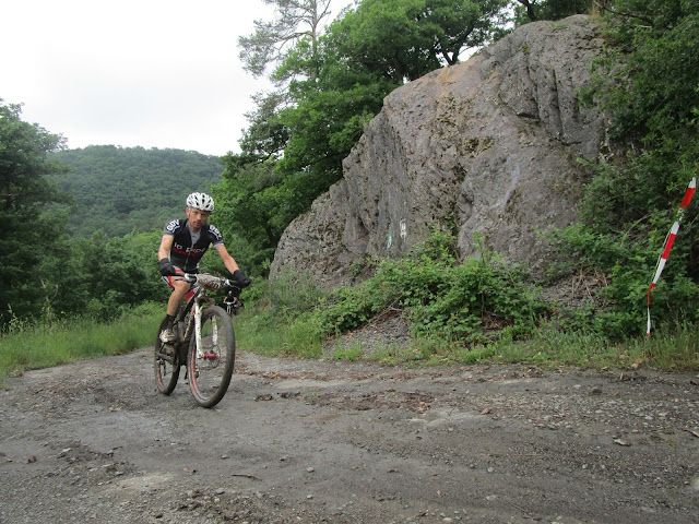 Na het korte Duitse avontuur zette Patrik en ik koers richting het zuiden. In Italië vertrokken we vandaag (woensdag 1 juni) voor de eerste rit van de 5 daagse rally di romagna. Onderweg naar Italië niets dan regen, in Riolo Terme gelukkig niets dan zon. Maandag kwamen we aan en op de lokale camperplek en zochten we een plekkie voor de komende dagen. Na een eerste kennismaking met de organisatie en een ritje met Gino en Luka (parcours bouwers) op dinsdag werd het ons al snel duidelijk. Erg leuk Mtb parcours maar zeker niet te onderschatten! Een erg gezellige dinsdag avond met lokale wijnen, bieren en heerlijke hapjes in het oude fort van Riolo met live muziek, maakt van het hele gebeuren een erg relaxte bedoeling. Vandaag, woensdag dus, was het eindelijk zover, de proloog. Na een briefing (op z'n Italiaans, rond 16u) vertrokken we richting de gezamenlijke startplaats, de steengroeve van hoofdsponsor Gyproc Saint Gobain. Dit levert uiteraard erg mooie plaatjes op al was de gezamenlijke "rustige" rit richting deze groeve eerder een gevaarlijk zenuwachtig gedoe waar zelfs al een valpartij was alvorens we 1 officiële km gereden hadden! Na de nodige plaatjes werden we rond 17u30 opgang geschoten! Om de groeve buiten te raken moesten we terug door een erg stoffige tunnel, altijd spannend rijden zonder zicht in een donker gat! Eens uit de gallerij direct een pittige klim. De snelle boys moet ik direct laten gaan al kan ik de schade blijkbaar nog redelijk beperken. Ik besluit m'n eigen ding te doen en de hartslag ietwat onder controle te houden. De geplande Max hartslag van 170 wordt al snel opgedreven tot Max 175 en wanneer na een paar vlakkere passages enkele boys in zicht komen gaat bij de volgende klim de Max naar 180. Het is vandaag maar 15km en een uurtje in het rood moet wel lukken. Een leuke test voor een marathon man. Het parcours is zoals gezegd erg uitdagend en mooi. Af en toe moet er van de fiets en lopen we een stukje naar boven. Ik zit dikwijls alleen en vind dat helemaal niet erg! We passeren de schitterende kam waar het steil op en neer gaat en ook de hartslag sprongen maakt. De laatste kilometers gaan hoofdzakelijk in dalende lijn en voor de eindspurt richting Riolo kan ik nog vol doortrekken. De slotklim op de kasseikes en trappen richting finish worden nog even vol genomen. Ik kom na een dikke 38' over de meet en behaal daarmee een mooie 18e algemene plek en 9e in de categorie onder de 40. Patrik stond volledig achteraan het pak bij de start maar wist na een serieuze inhaalrace het goed gevoel om te zetten in een mooie 67 ste plek. Het is al best laat, fietskes afspuiten, nog een kleinigheidje eten en dan redelijk op tijd de nest in!
